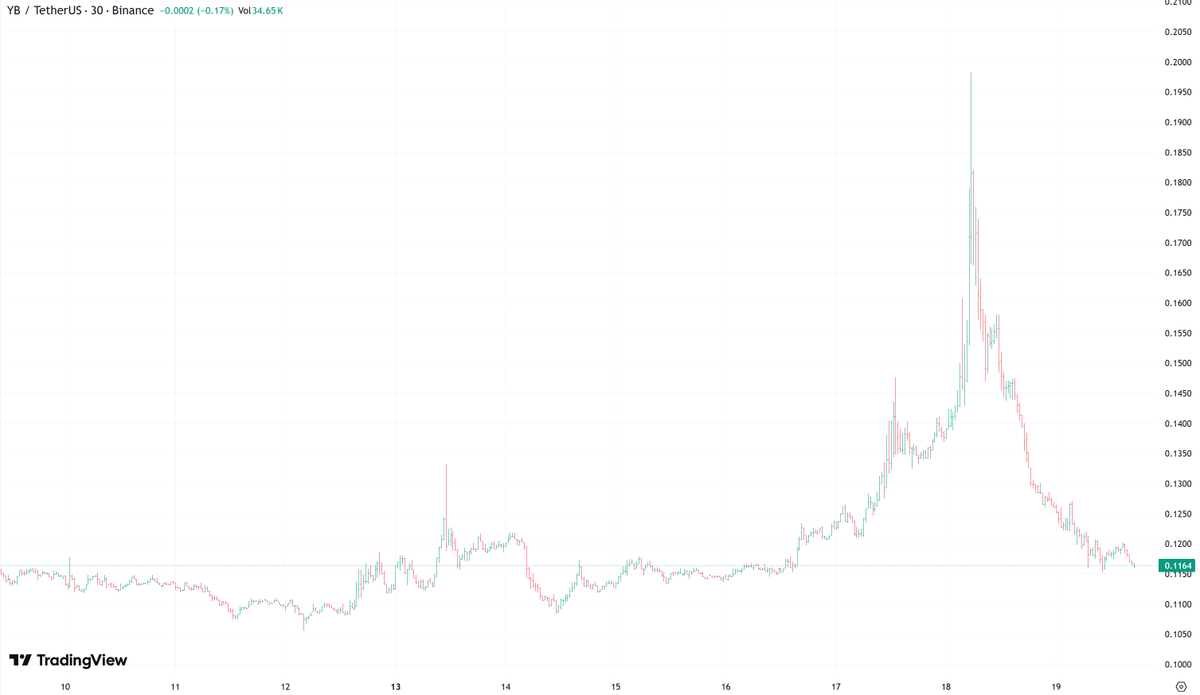 UPDATE #3: Binance did a nice pump-and-dump on $YB over the past two days right as the unlocks start to hit. Spirit of DeFi summer coming back any day now.😋 Btw, it's still not public knowledge what % of YB supply was given to Binance for the $YB listing. https://t.co/aGxsBXEEYE