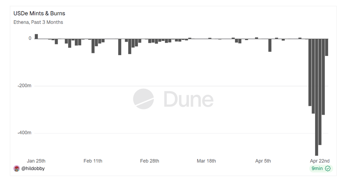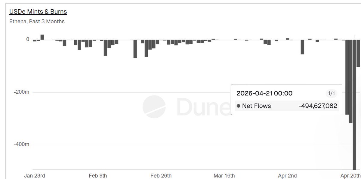 UPDATE: Holly Molly, total outflows from Ethena are now @ $1.2b since the $rsETH hack. $USDE biggest daily outflow yesterday @ $495m😬 Ethena's proximity and inter-connectedness with $AAVE has come at quite a big cost! $ENA https://t.co/AJEhs138jP
