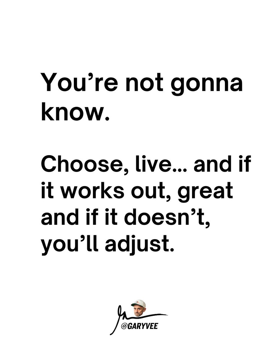 People struggle making decisions without realizing that even if they think it through carefully, deeply, and smartly, many times they can't control many of the other variables and they won't know the outcome. This concept that you will 'definitely know' or are 'sure of it' is just a falsity. So, do the best you can; use your intuition, not just your brain. Make a call and move on. Speed matters. Adaptability matters.