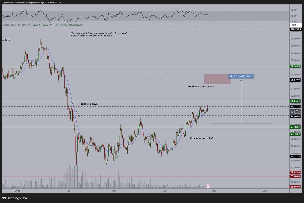 Such a massive crash on $BTC earlier. I'm kidding. The markets are still shaping up for more upside, and it's still holding crucial levels. I think that we'll see $85-88K in May and correct/consolidate from there. https://t.co/OTJjHG0xbb