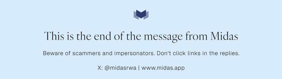 ⚠️ DISCLAIMER This communication is an advertisement. It is issued for marketing purposes only and is not investment advice, a recommendation, or an offer, solicitation or inducement to buy, sell or subscribe to any Midas-issued token. https://t.co/wTzLEVSK7E