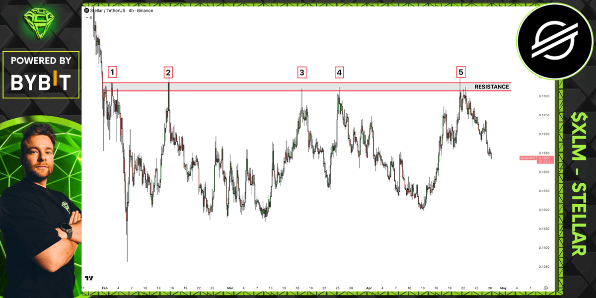 Nope! $XLM was once again harshly rejected at resistance. Even the fifth attempt ended up being unsuccessful. Unfortunately, also here: resistance is resistance until it isn't! https://x.com/AltCryptoGems/status/2047301210374590594?s=20 https://t.co/fQViAZmRWz